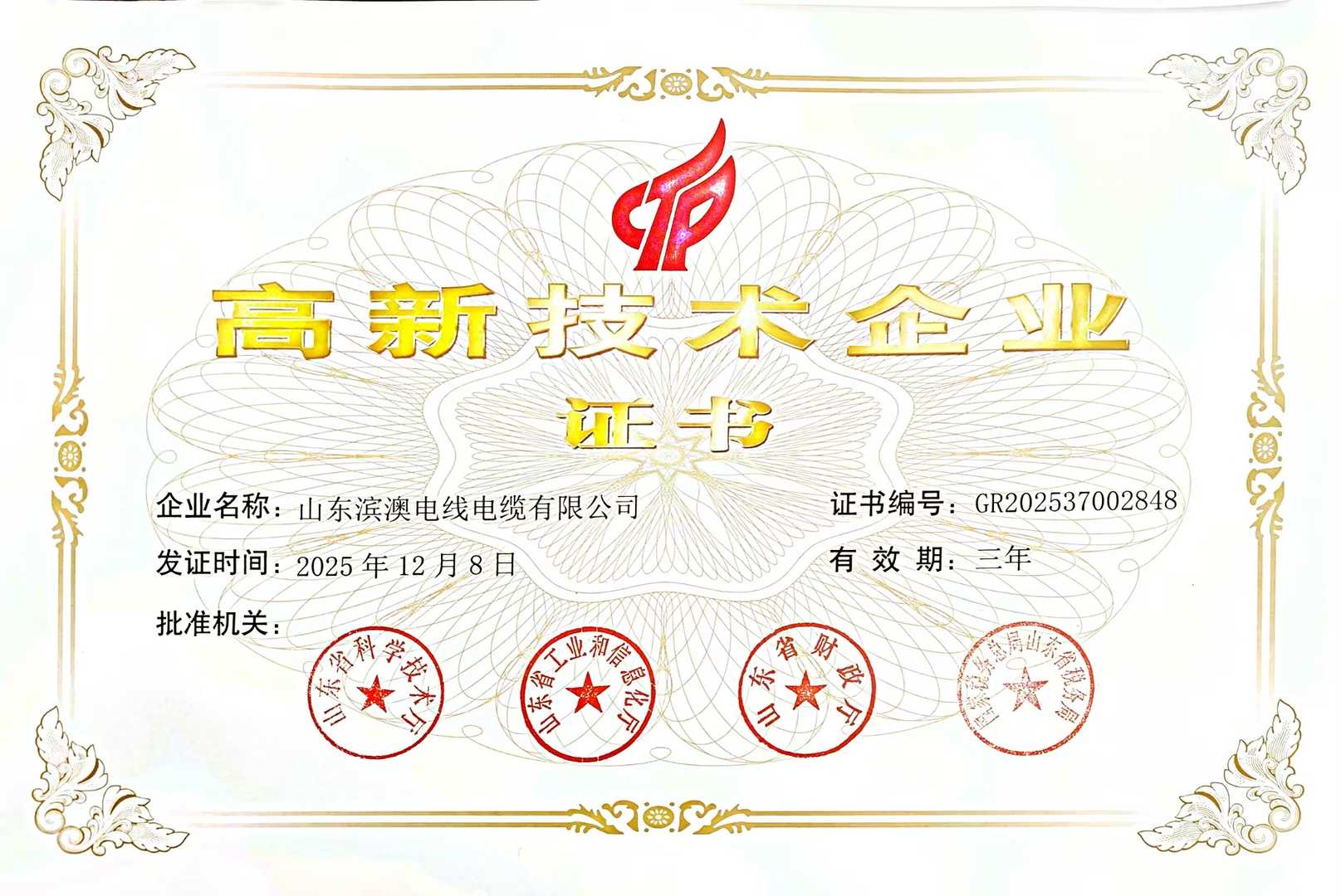 高新技术企业证书